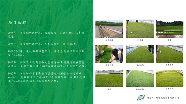 我司2012年應黑龍江某企業誠邀,開發出秸稈生物質水稻環保育秧盤生產機器,經過公司全員的努力,于2014年成功的攻克了生物質環保育秧盆批量生產的機器及工藝難題,目前已經在黑龍江地區持續銷售多條大小生物質育秧盤生產線。在2018年,與中國農業大學農學院及黑龍江國壤農業科技有限公司達成戰略合作關系,就水稻育秧盤項目進行更深一步的合作與研發。