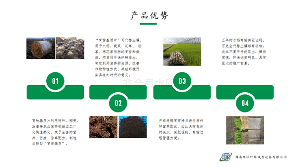 本產品針對水稻旱育苗大量挖取耕層土,耕層破壞嚴峻的現實,利用秸稈、蘑菇菌糠、稻殼、沼渣等農林廢棄物經過工廠化快速熟化,賦予全套的營養、防病、除草配方,制造成新型的嶄新的“無土育苗基質”。